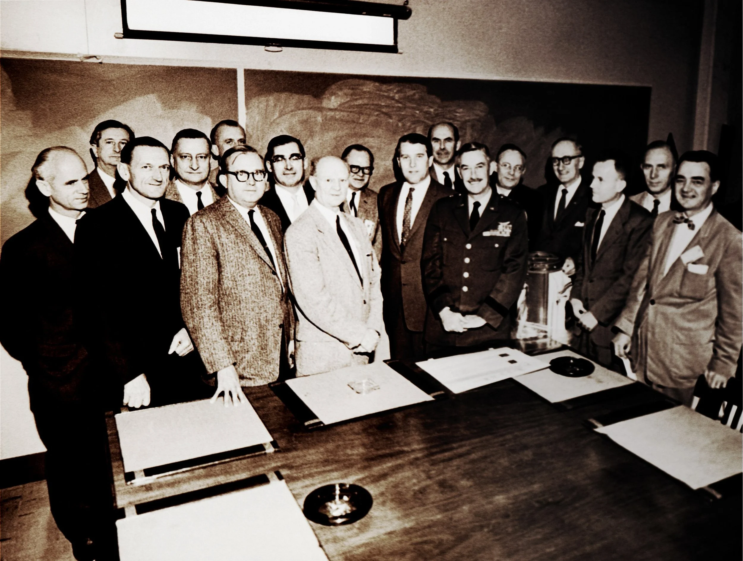 In this historical photo from the U.S. space agency, Werhner von Braun, then Chief, Guided Missile Development Operation Division at Army Ballistic Missile Agency (ABMA) in Redstone Arsenal, Alabama, was visited by Walt Disney in 1954. In the 1950's, von Braun worked with Disney Studio as a technical director, making three films about space exploration for television.